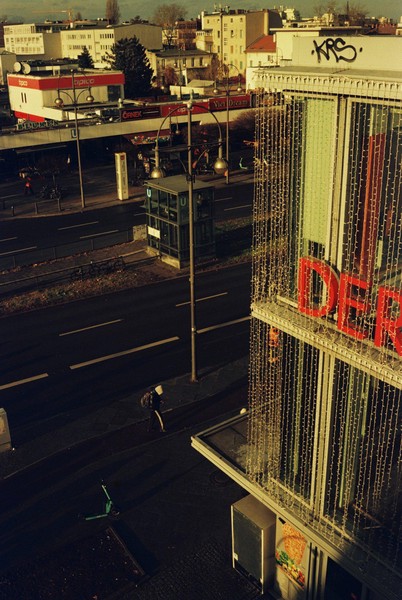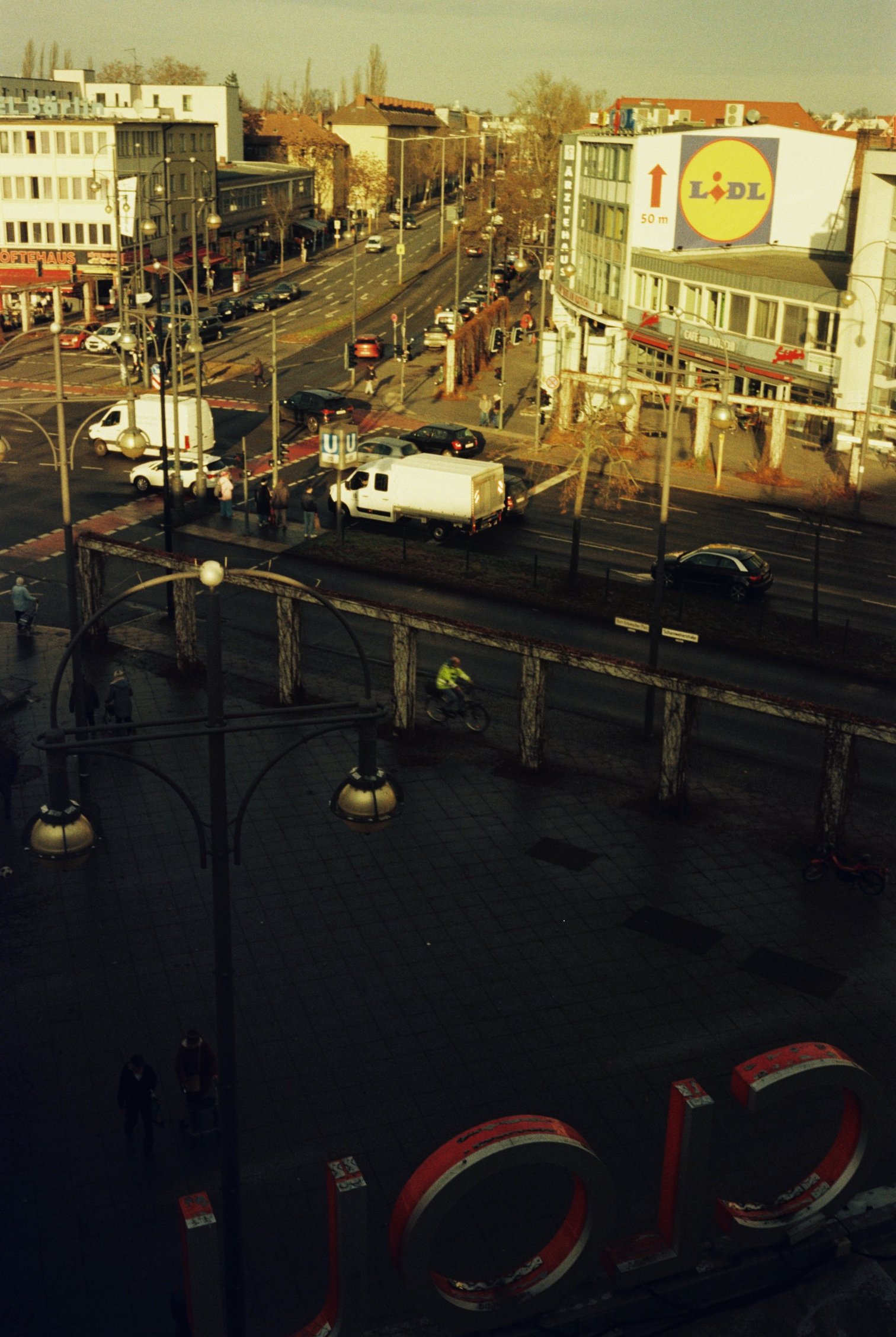 mit dem KONO-effektfilm im einkaufszentrum am kurt-schumacher-platz, zurück an der panke nach pankreich.