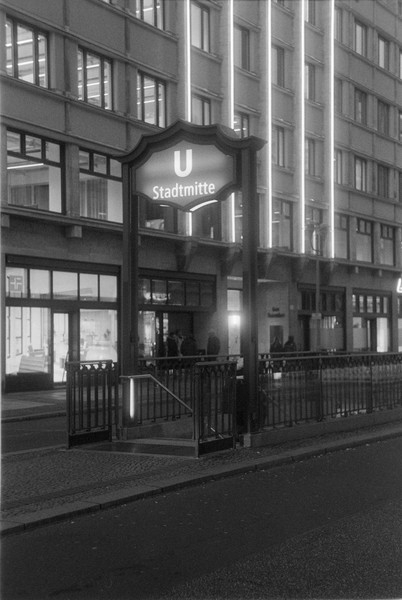 000391 - 12/25 Dec 21, 2025 📷 Leica M5 🎞️ Agfa APX 400 🥫 ZONE IMAGING DeFehr´s 510 Pyro 1+100 11min 💻 Sony Alpha 6000 spaziergang durch kreuzberg un prenzlauer berg, es ist früh dunkel in der friedrichstraße. 📂 35mm berlin 🏷️ berlin kreuzberg hafenplatz mehringdamm friedrichstraße technikmuseum kettwurst prenzlauer berg kochstraße berliner woche ubahn stadtmitte