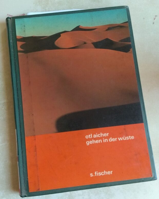 alles klein geschrieben (( meist schreibe ich auch hier im blog alles klein, aus praktischen gründen und weil internet ist. gefreut habe ich mich vor jahren, als ich bei ix einen theoretischen unterbau las. von dort auch die lektüreempfehlung)), aicher schreibt über seine reisen in die wüste. es ist kein zusammenhängender text, aber viele zusammenhängende texte, mal lyrisch, mal praktisch, mal abenteuerlich, mal menschlich. es sind reisen ohne technik, keine handys, kaum autos, wenig gepäck, nur viel wasser und landkarten. reisen mit sich alleine, auch er meist nicht alleine war. dazu viele tolle bilder. sie zeigen meist nur wüste, selten menschen. aber vermitteln einen guten eindruck, dass die wüste immer anders aussieht. jede düne ist in bewegung und dient doch als orientierungspunkt.