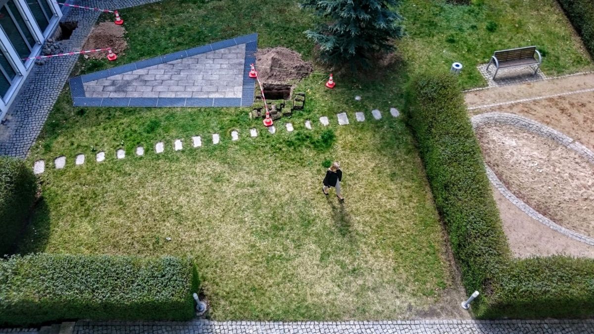 throwback in april 2016: in einem hof eines berliner bürogebäudes in mitte passieren merkwürdige dinge. das architektonisch höchst bedenkliche gesamtkonzept aus oval, trapez und dreieck wird gestört durch zwei rechteckige löcher. absperrband verhindert unfälle.