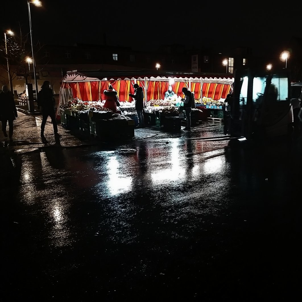 mit dem südkoreanischen telefon eine abendliche szene am vorwiegend vietnamesichen großmarkt im berliner bezirk lichtenberg fotografiert.