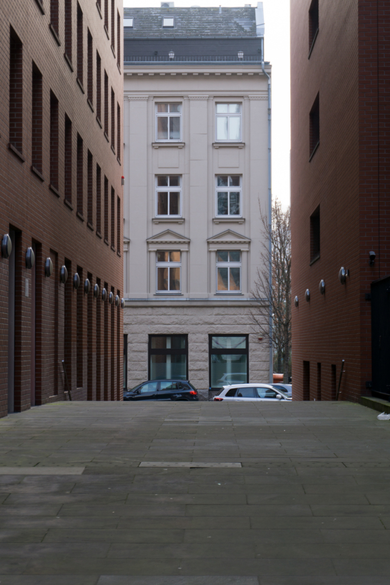 der weg ins büro bei langsam sich lichtendem nebel anfang märz. die (für mich) neue sony α6000 mit kitobjektiv fühlt sich noch etwas ungewohnt an. zuviele knöpfe, menüpunkte, möglichkeiten, das überfordert. guckt man durch den sucher oder aufs display? der akku wird schnell leer, das mag am wetter liegen.