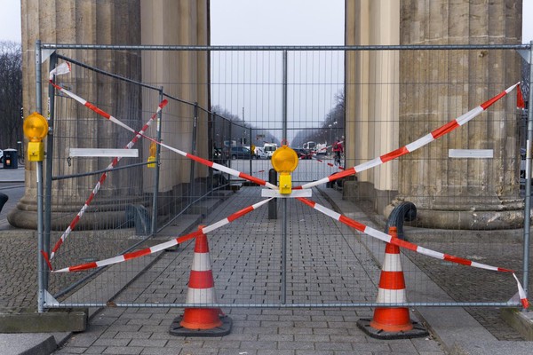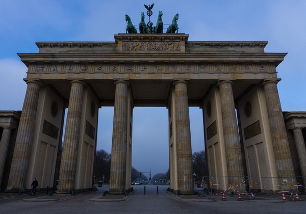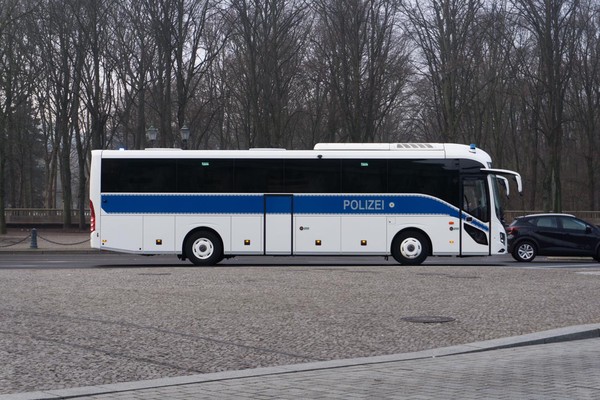 nichts los am brandenburger tor, der schaden vom unfall im januar ist noch nicht repariert. mehrere reisbusse mit großer POLIZEI-aufschrift düsen den 17. juni runter, die scheiben getönt, sodass man nicht sieht, ob wer drinnen sitzt.