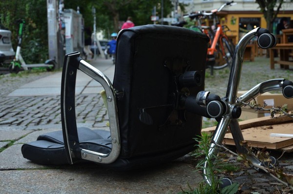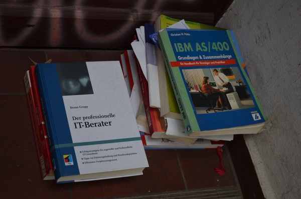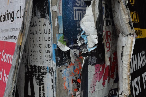 doch lassen wir unsere augen einstweilen auf den kleinen dingen ruhen, auf den verlorenen, unachtsam weggeworfenen. morgen oder nächste woche werden sie weggeräumt, gesammelt, vom winde verweht. momentaufnahmen der stadt, die so absolut in jenes bild passen, die der provinzler von der großen stadt hat. weil er sich nicht eine solche unordnung in seinem städtchen vorstellen kann. weil aber auch so viele menschen aufeinander hocken hier und beständig dinge brauchen, konsumieren und wegwerfen. die abgetragene damensandale auf einem stromkasten am hackeschen markt? stolpert die besitzerin nun unbeschuht ihrer wege oder hat sie längst ersatz gefunden in einer der boutiquen?