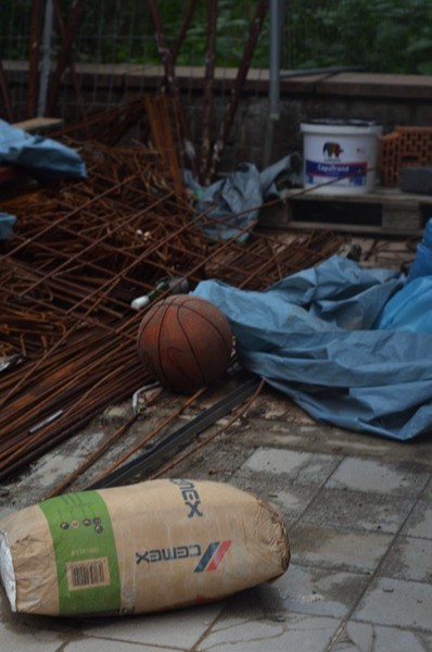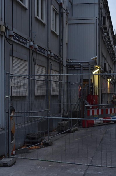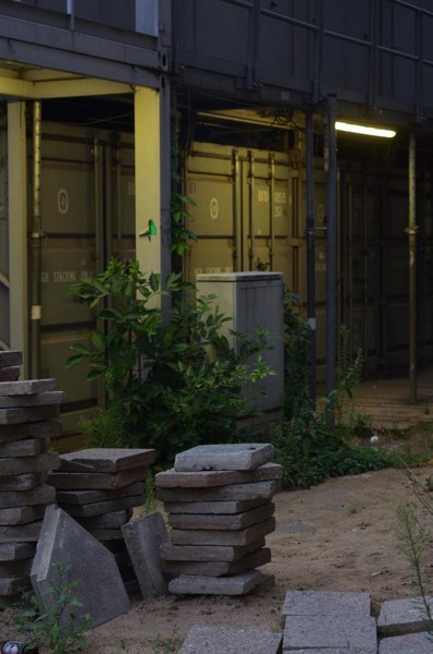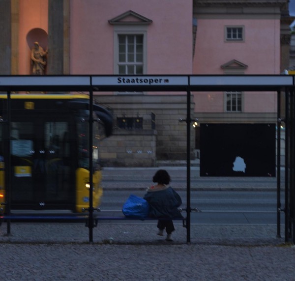 die baustellencontainer, reich illumniert, sehen aus wie in einem computerspiel, das alienmonster lauert um die ecke und muss erschossen werden. der einsame basketball zwischen baustellenmüll - wie kam er da hin, wer kann nun nicht mehr dribbeln? die frau an der bushaltestelle steigt nicht in den bus, obwohl doch alle in dieselbe richtung fahren. worauf wartet sie an diesem zugigen nicht-ort?