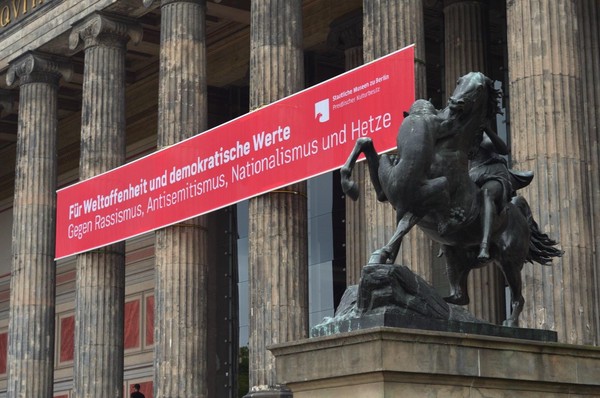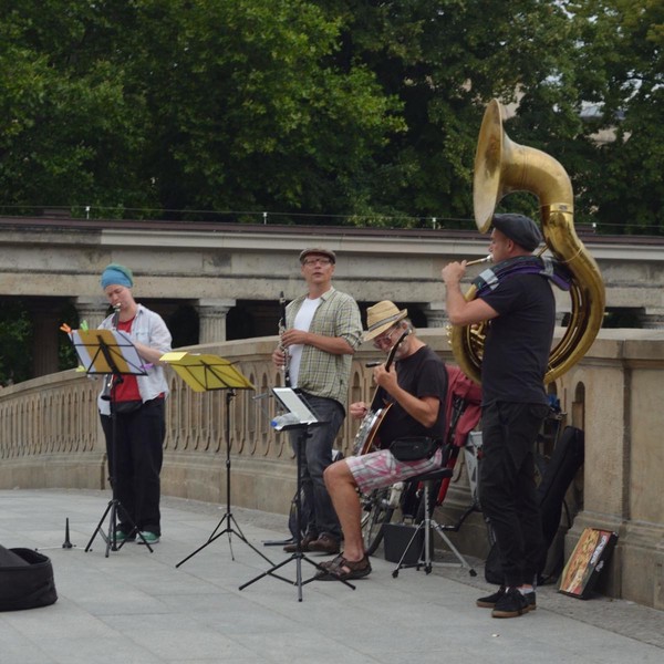 an einer laterne an der ecke friedrichstraße ein selbstgeschriebener zettel “UNERSÄTTLICHER HUNGER NACH VERGNÜGUNGEN…”, genau dort, wo es kein vergnügung mehr gibt. wo stadtleben genau nicht stattfindet, sondern durch büro und verwaltung und straße und trourismus verdrängt wurde. die friedrichstraße überhaupt, einst zentrum der avantgarde und ausgehzentrum ist nun ein lächerliches sträßchen voll borniertheit und provinz. die trottoirs zurück gedrängt vom automobilen individualismus. und fahrräder überall, sie stapeln sich und bilden skulpturen an den kreuzungen. sie werden auch bewegt, man glaubt es kaum, sodass sich die skulpturen wie organismen jeden tag neu formieren. eine band bläst den lustigen marsch auf der friedrichsbrücke, der sound berlins ist schwer zu beschreiben, hier klingt er nach jazz und großer welt.